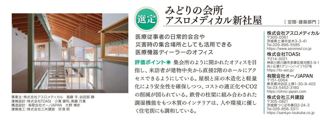 いばらきデザインセレクションにおいて、「みどりの会所 アスロメディカル新社屋」が選定を受賞しました。